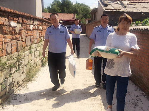 家住桥头镇兴隆村5组的居民老王,今年53岁,2003年因拉架受伤致残,家中独子2004年意外致残,整个家庭的重担都落在了妻子一人身上,家庭状况十分困难。平山刑警大队了解情况后,大队长黄智力和教导员张天池带领青年民警走进老王家中,带去了米、面、油等生活必需品,详细询问了家中存在的困难和问题,并叮嘱他们要注意身体,有困难及时联系。