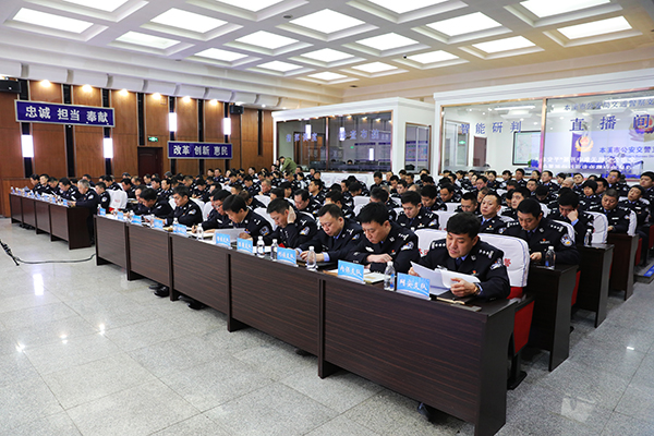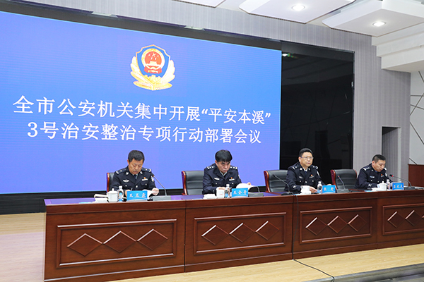 为全面落实平安本溪“民生警务”战略,进一步加大突出治安问题整治力度,切实解决群众普遍关注的治安焦点、热点问题,有力维护社会治安大局持续稳定,积极为人民群众创造良好的治安环境,本溪市公安局于1月19日召开专题会议,就集中开展“平安本溪”3号整治专项行动和集中清查统一行动进行全面部署。副市长、公安局长王会奇、副局长张昕及各分县局局长、主管治安的副局长、治安大队长和派出所长,市公安局交警、巡特警、网安、督察、刑警、内保、禁毒等部门的负责同志及治安支队和社区支队的全体民警参加会议。