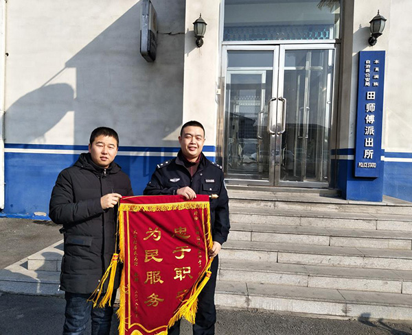 老人儿子为了表达对民警的感激之情,制作了一面锦旗送到民警手中说:“是你们为我解决了后顾之忧,不然我都在外地没法安心工作,母亲视这条狗如同我。”值班民警体会到群众求助的小事就是他生活中的大事。