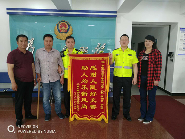 日前,丹东驾驶员李某拄着拐杖,带着锦旗,携家人一起到本溪交警高速一大队感谢民警宋相林、辅警李明星。