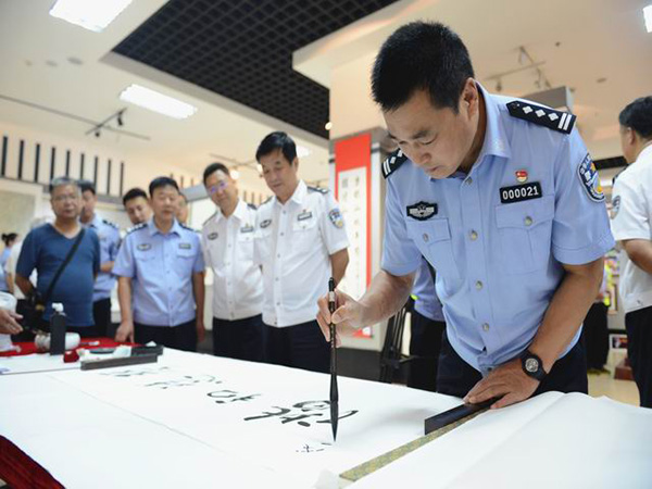 翰墨写忠诚,丹青绘警魂。为深入学习贯彻党的十九大精神,坚持以习近平新时代中国特色社会主义思想武装头脑,进一步彰显公安机关“以人民为中心”的发展理念,不断推进公安机关党风廉政建设和公安文化事业长足发展,6月27日上午,本溪市公安局在市图书馆隆重举行为期三天的“践行民生警务 助力振兴发展”暨“清风荷韵 水墨公安”主题书画摄影展。